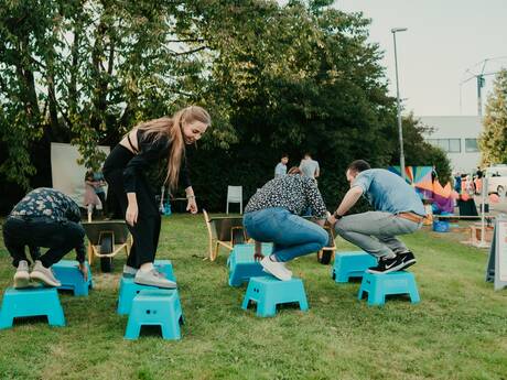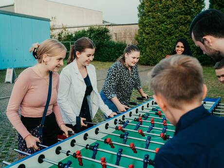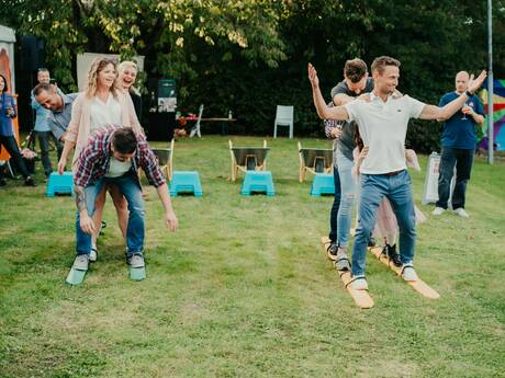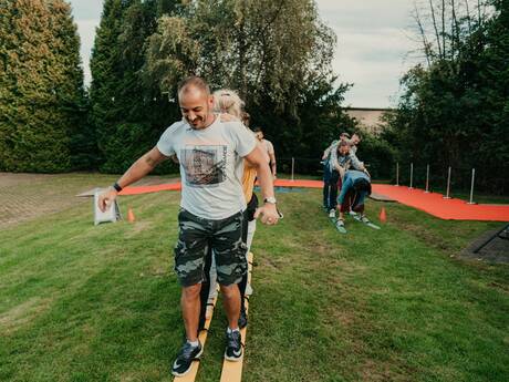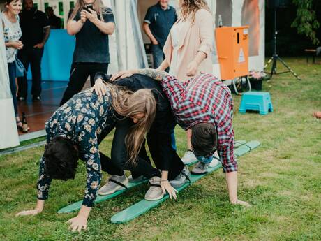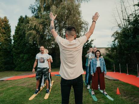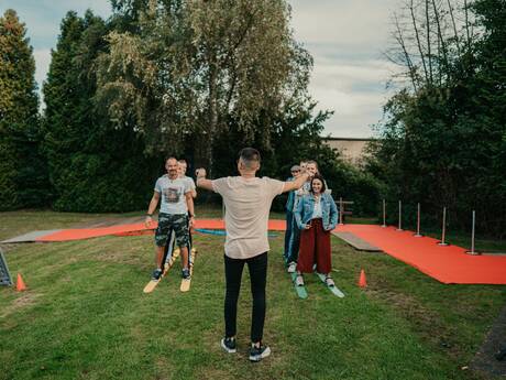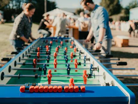 Games for all ages attracted kids young and old. A clown, painting station and handicrafts entertained the younger set while an oversize table soccer setup, pushcart races and team skiing gave everybody a chance to enjoy some friendly competition.