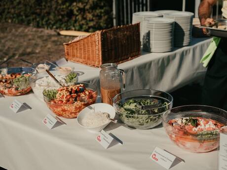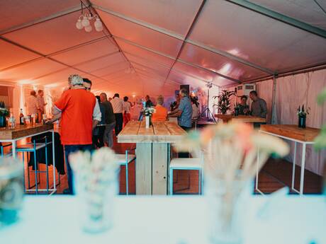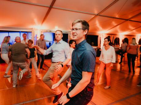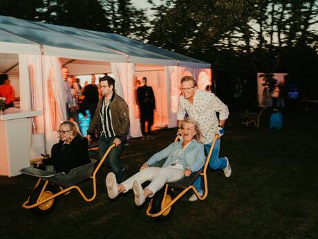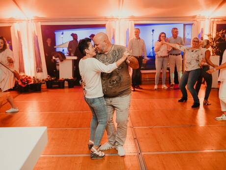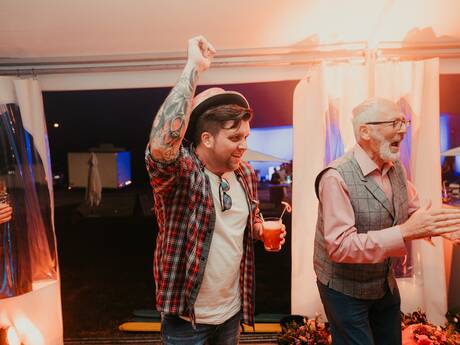 Meanwhile, drinks, a barbecue station with sides and a crêpes-waffle cart for the sweet tooth kept guests well fed and ready to celebrate. Later in the evening the event moved inside the pavilion, and a DJ entertained the crowd, where dancing and laughing lasted far beyond midnight.